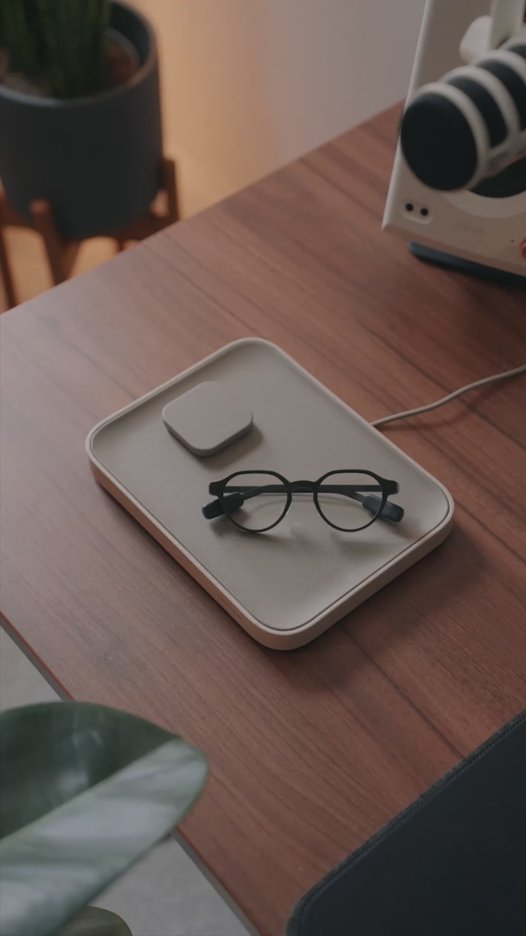 Valet delivers wireless charging for Qi2-compatible devices like your iPhone or AirPods case. After placing your phone on the tray, Valet’s three white lights softly bloom to life to confirm the connection. Never wake up to an uncharged device again.